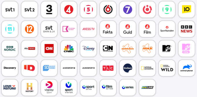 48 Tv-kanaler, Tv4play plus, HBOmax, Viaplay medium och Britbox